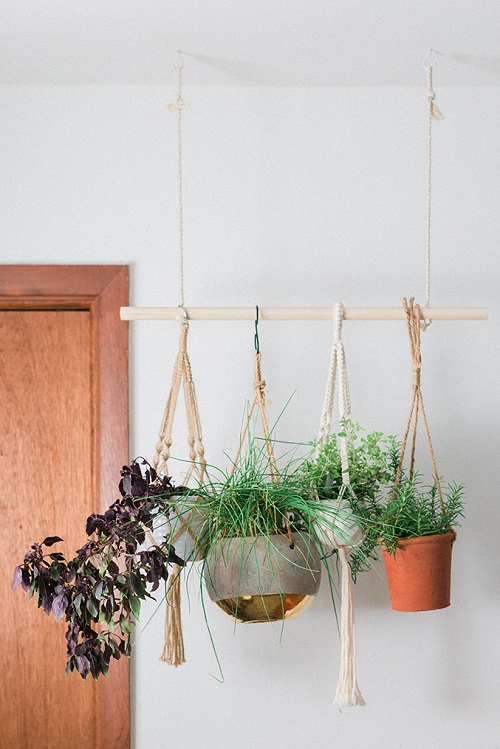 2. Grow Herbs in Macramé Planters for a Boho Look