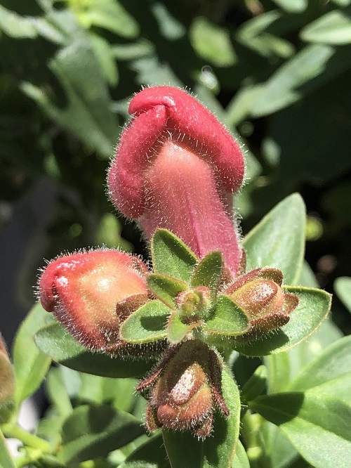 Snapdragon flower buds share a surprising likeness to a penis, both with their color and shape, while the dried blooms look like skulls.